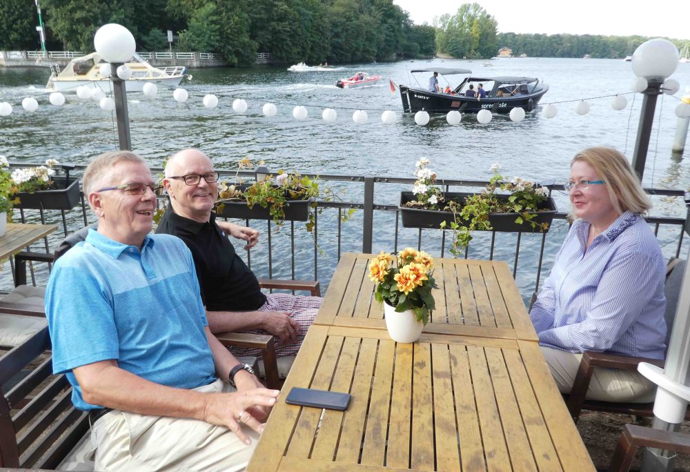 Frühstückspause an der SpreeNicht in der KaribikNach etwa 5 KilometernVerdiente Pause im besten Cafe in RahnsdorfHeute mit vielen Verkehrsmitteln: S-Bahn, Bus und Fähren. Das ist die kürzeste Strecke, 15 Meter mit dem Ruderboot und einem ausgebildeten KapitänKommt mit im nächsten Jahr. Ich freue mich auf Euch.