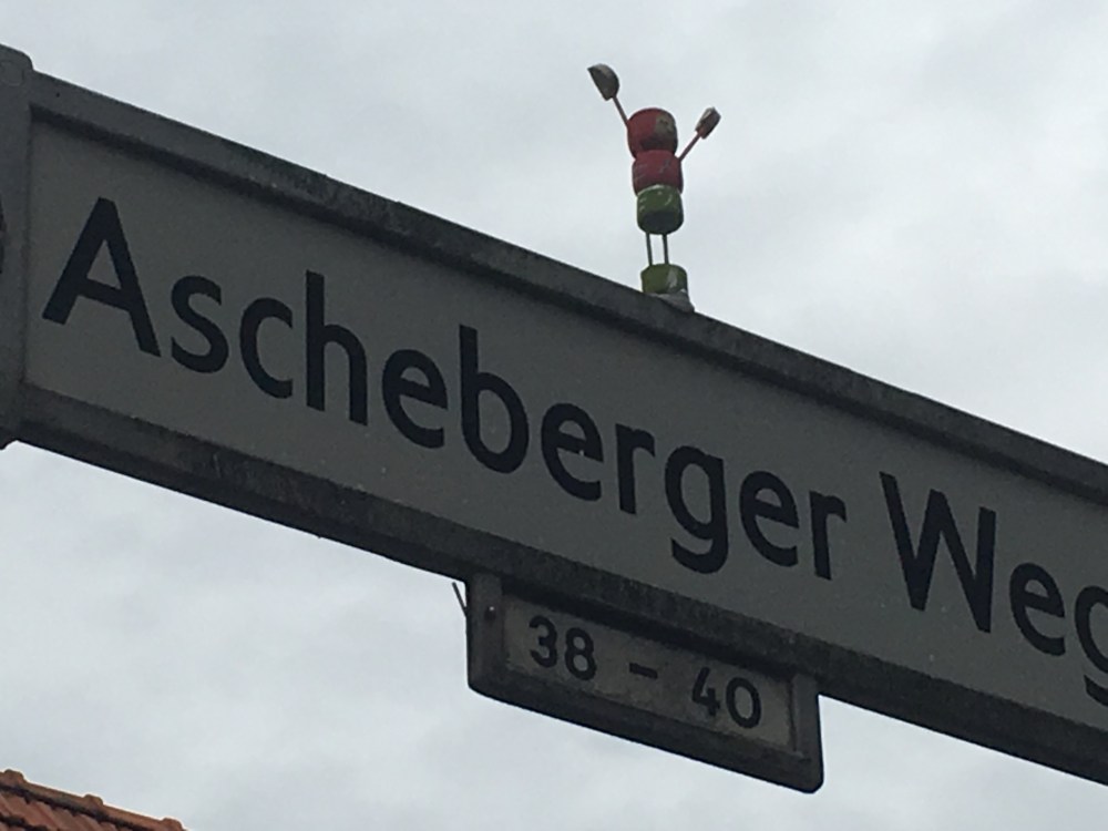 Der Blick nach oben ist fast immer lohnenswert, besonders in Berlin. Wenn er auch nicht immer zu einem besonderen Erlebnis wird. Immerhin habe ich hier eine Straße mit meinem Vornamen gefunden. Eine von insgesamt vier. Straßenschilder dienen in erster Linie der Orientierung. In einer so großen Stadt ist es wichtig, wenn man ungefähr weiß, wo man sich gerade aufhält. Aber interessant wird es erst, wenn man feststellt, dass ein solches Schild auch ein Platz für eine ungewöhnliche Skulptur sein kann.