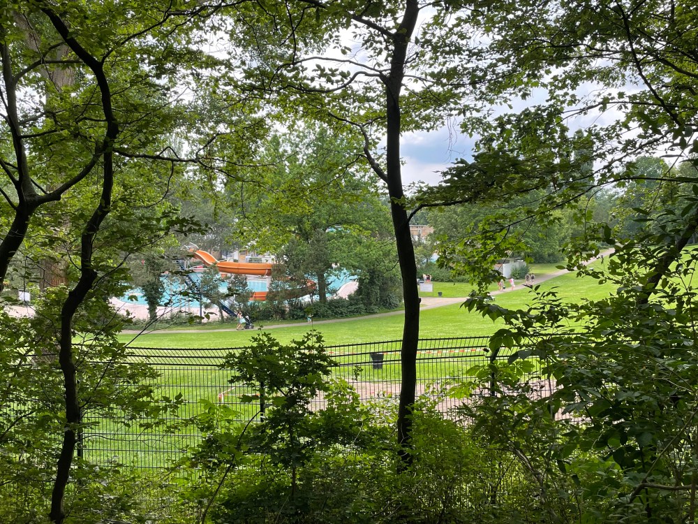 Als die Aufräumarbeiten beendet waren, überdeckte man die Schuttschicht mit etwas Erde und pflanzte Bäume und Sträucher an. Nach über sechzig Jahren sieht man von den Trümmern nichts mehr. Die Bäume sind riesig. Aus dem Trümmerberg wurde ein Erholungsgebiet mit Sommerschwimmbad, Abenteuerspielplatz und Planetarium. Man glaubte, für die Sternenguckerei einen idealen Standort gefunden zu haben. Der Trümmerberg lag weit außerhalb des bebauten Stadtgebietes. Die Luft war rein und erlaubte einen tiefen Blick ins Universum. Das ist nach wenigen Jahrzehnten nicht mehr de Fall. Das Planetarium macht einen etwas verstaubten Eindruck. Dafür erfreut sich das Freibad großer Beliebtheit.