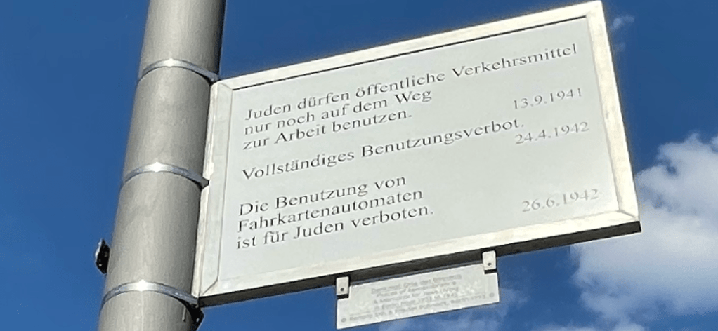 Tafeln im gesamten Stadtgebiet weisen darauf hin, was mit ihnen nach 1933 passiert ist. Dort ist dokumentiert, wann Juden ihre Pelzmäntel, wann ihren Schmuck und ihre Wollsachen abzuliefern hatten. Oder wann es keine Lebensmittel mehr für sie gab. Aber auch, dass 1936 während der Olympischen Spiele alle öffentliche Judenhetze zu verbergen sei. Je länger man mit diesen Tafeln zubringt, desto klarer wird die perfide Methode der Ausrottung eines großen Teils der deutschen Bevölkerung.