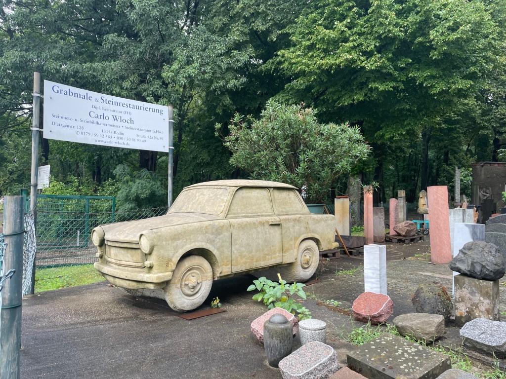 Wer vielleicht einen sehr individuellen Grabschmuck für seine letzte Ruhe sucht, sollte auf alle Fälle beim Steinmetz nebenan vorstellig werden. Der hat wirklich für jeden Wunsch das passende Angebot.