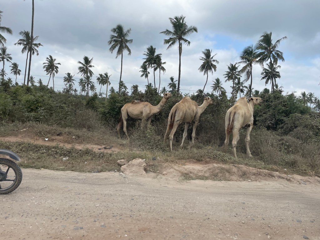 Der Himmel ist bedeckt. Dadurch ist es nicht ganz so heiß. Pünktlich um 10 Uhr wartet das Taxi auf mich und bringt mich zum Paradies. Ich habe Glück. Der Verkehr ist nicht so heftig. Wir fahren gemächlich. So gelingen mir Schnappschüsse aus dem Wagen: Ein paar grasende Dromedare am Fahrbahnrand, das Gefängnis und das angrenzende Gericht. Fotos von amtlichen Gebäuden sind in Kenia streng verboten. Aber ich bin auf Abenteuertour. Der Thrill muss sein.