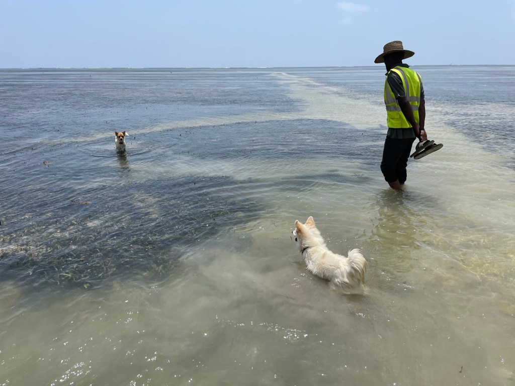 Wir fahren an den „Public Beach“ . Der sieht sehr naturbelassen aus, nicht vergleichbamit den täglich gesäuberten Hotelstränden. Auch hier standen früher Hotelpaläste, auch reiche indische Familien haben hier gewohnt. Die Zeiten sind längst vorbei. Heute ist man meistens alleine. unterwegs. So haben die Hunde freien Auslauf, den sie genießen.